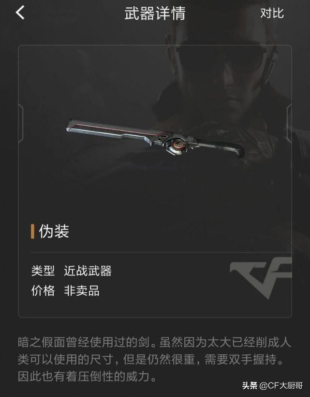 伪装这把近战武器是通过打挑战开箱子或者在地图里面有概率得到永久,它是暗之假面用过的剑,所以现在这把剑是缩小版的伪装,从视角来看是非常的重的,需要双手来握的。所以它算得上一把是一把比较冷门的武器,我想这把武器应该算得上挑战里武器最长的一把武器了。