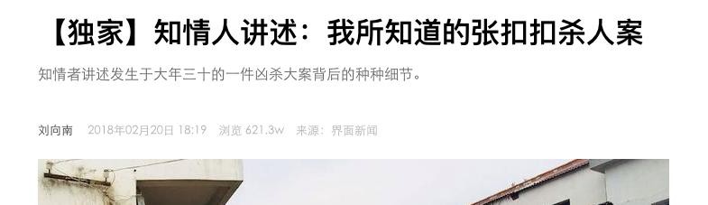 “知情人讲述:我所知道的张扣扣杀人案” 界面新闻 2018.02.20