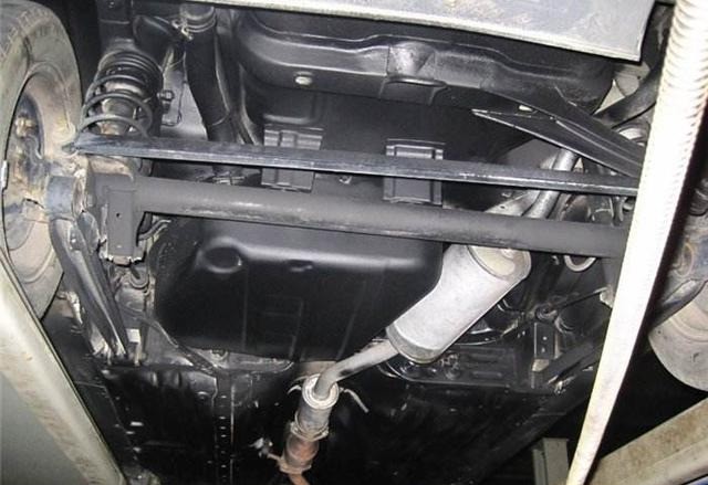 然后是奥拓的底盘部分,前轮麦弗逊式独立悬架,后轮采用三连杆式非独立式悬架(板车悬架,两根纵臂,一根横向止推杆)。结构很简单,同样是由于车重较轻,奥拓的操控性实际并不差