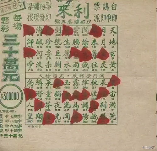 “白鸽票”是一种旧时的彩票。源于清代赌鸽,赛鸽时每只鸽子按《千字文》中的天、地、玄、黄、宇、宙、洪、荒、日、月……等字顺序编号,赌鸽时所猜字号若与比赛结果相同,则为赢家。