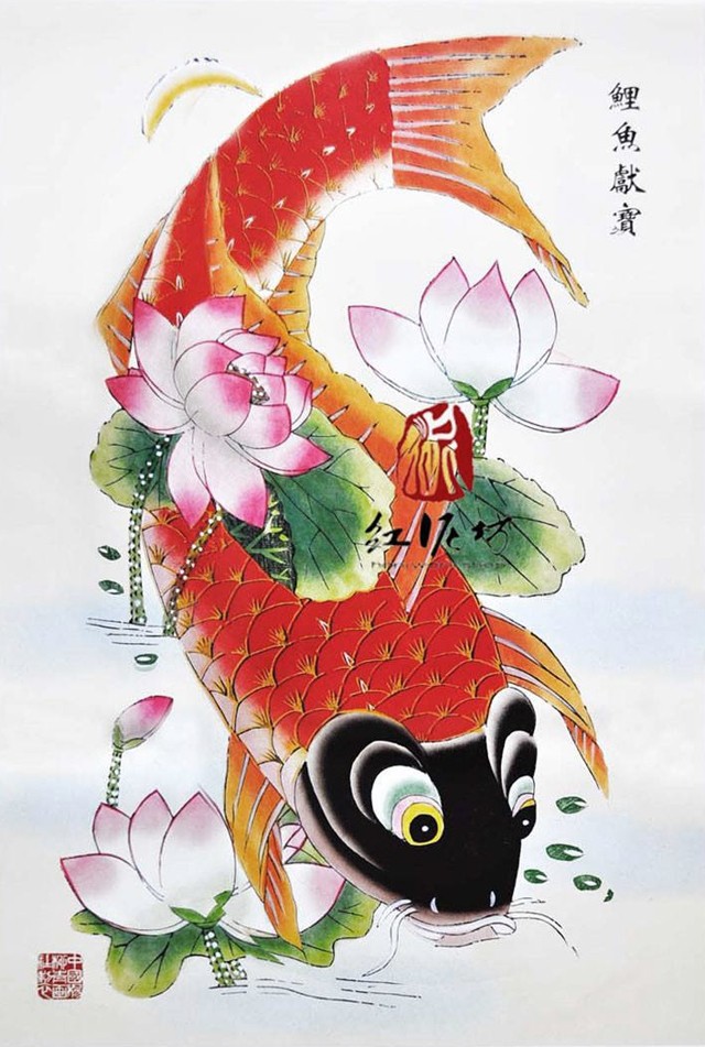 杨柳青年画《鲤鱼献宝》