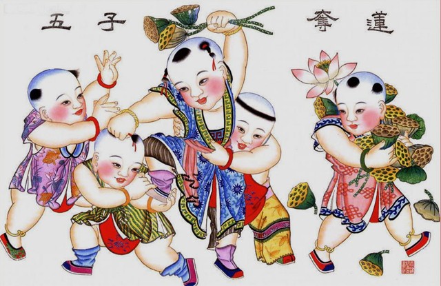 杨柳青年画《五子夺莲》