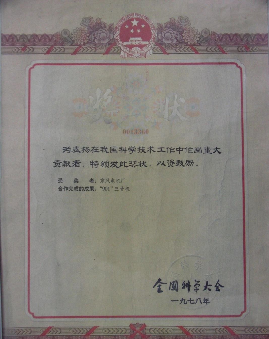 1969年4月28日,东风电机厂主导产品之一—三号机试制成功(在1978年时获得全国科学大会特别贡献奖、四川省重大科技成果奖,40毫米单晶熔炼炉获得四川省重大科技成果奖)。至此,东风电机厂四种内迁产品中频电机、电磁铁、小电机、加速器全部开始投产。
