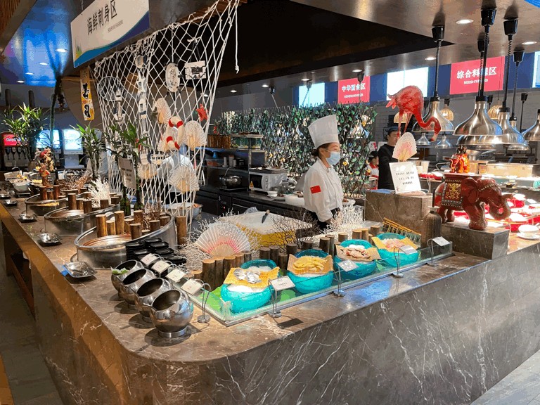 休闲区配备了氧吧、健身房、瑜伽室、乒乓球室,还有小型的儿童游乐。自助餐性价比挺高,各种菜品营养丰富,可以不出温泉直接用餐,适合带娃舒适的窝在里面一天。