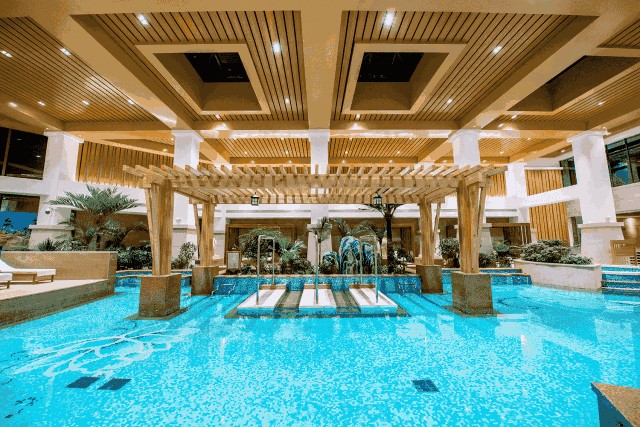 60余个温泉泡池,分室内和室外,种类很多,有鱼疗池,宝石类,五行养生类等。