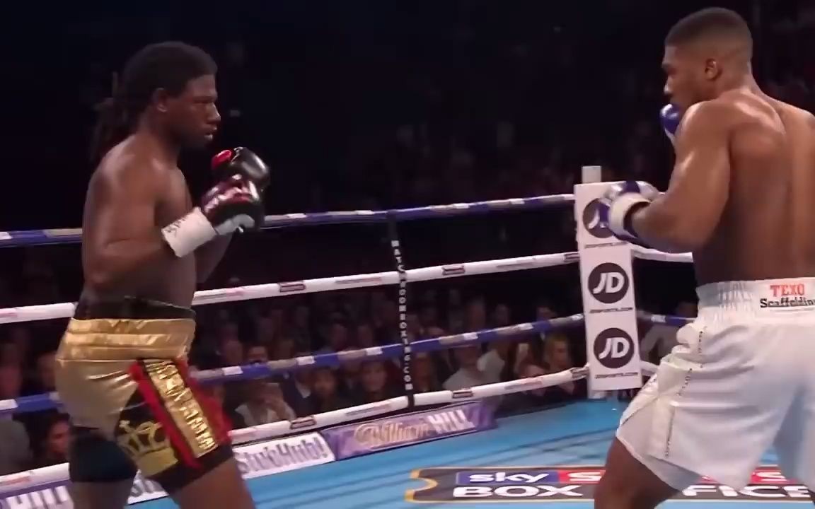 约书亚在第10回合TKO了法国挑战者卡洛斯塔卡姆,成功卫冕了WBA、IBF和IB哦重量级世界冠军金腰带。