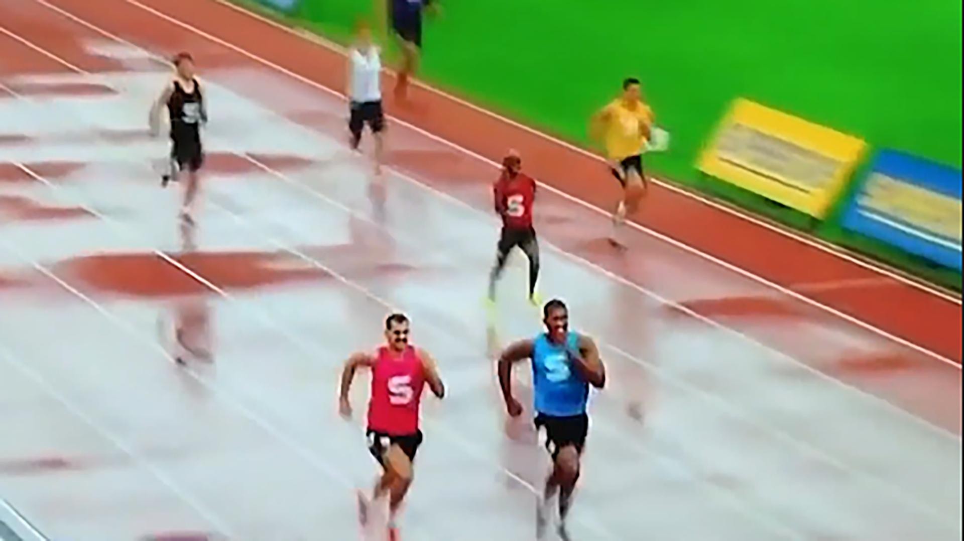 在学校举行的100米赛跑比赛上。