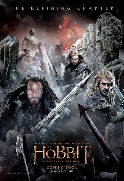 《霍比特人:五军之战》(The Hobbit: The Battle of the Five Armies)是彼得·杰克逊执导的《霍比特人》系列魔幻冒险电影的最终章,改编自托尔金小说,由华纳兄弟影片公司、新线电影公司 、 米高梅电影公司联合出品,伊恩·麦克莱恩、马丁·弗瑞曼、理查德·阿米蒂奇、伊万杰琳·莉莉、李·佩斯、卢克·伊万斯、本尼迪克特·康伯巴奇、凯特·布兰切特、奥兰多·布鲁姆主演,定于2014年12月17日在美国上映。