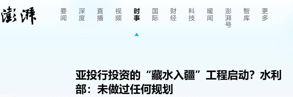 澎湃新闻——亚投行投资的“藏水入疆”工程启动?水利部:未做过任何规划