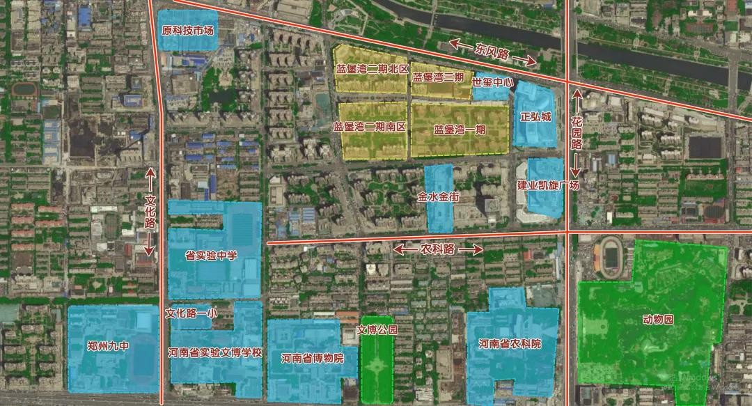 正弘蓝堡湾位于东风路与花园路交会处西南,属于金水CBD板块。