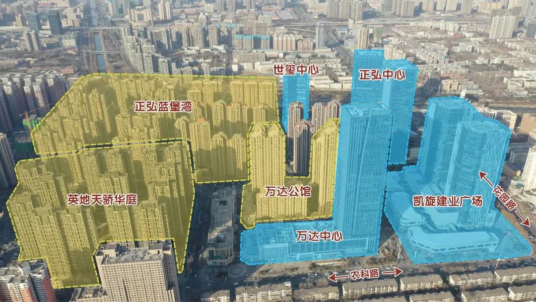 建业凯旋广场紧邻正弘城,是区域内第二大购物中心,位于花园路西、农科路北,占地面积约3.4万平米,由5万平方米自持体验式购物中心、150米高5A双塔写字楼(13万㎡)和2.3万平方米室外商业步行街组成。