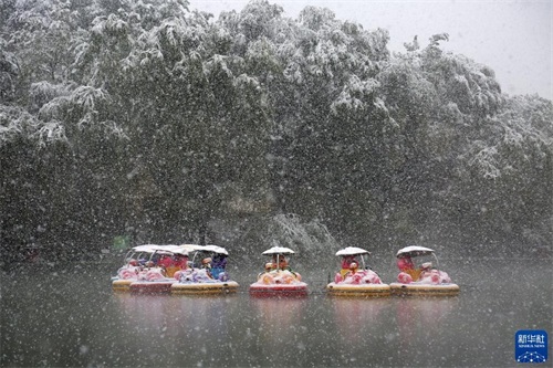 这是10月10日拍摄的甘肃省平凉市柳湖公园雪景。新华社发(吴希会 摄)