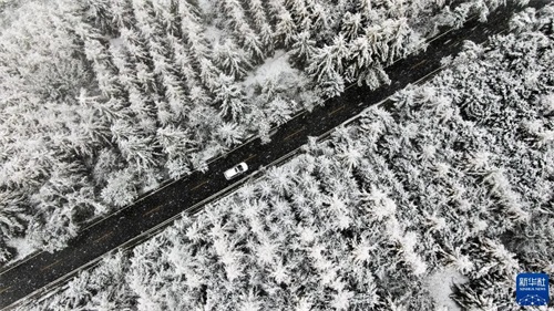 这是10月10日拍摄的甘肃省平凉市崆峒区南山生态公园雪景(无人机照片)。新华社发(吴希会 摄)