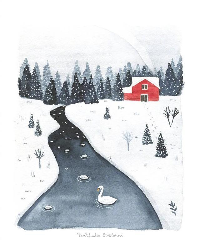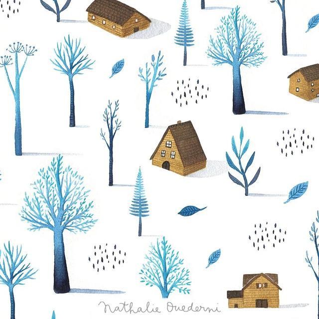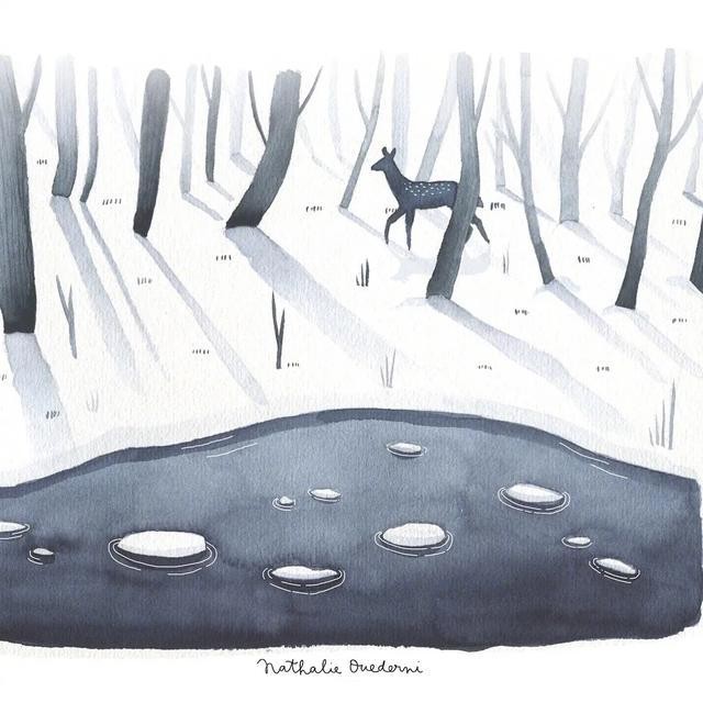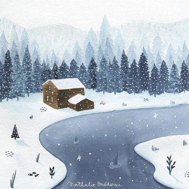 治愈系水彩插画丨清新淡雅干净的冬日森林