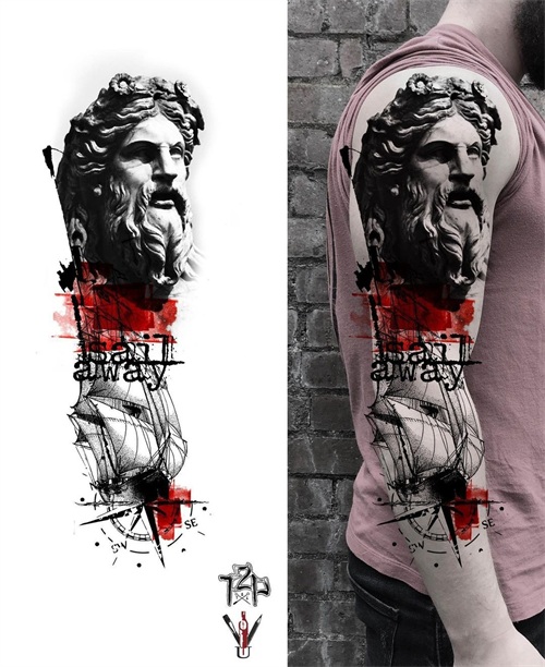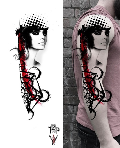 一组大臂纹身图案及效果图