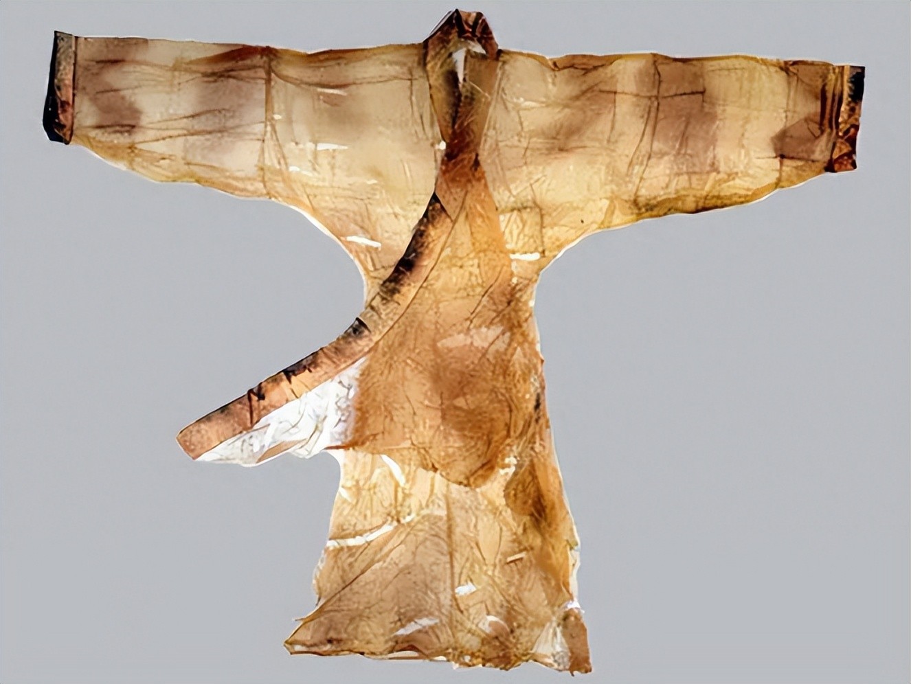 在辛追夫人身上所穿的20多件衣服中,素纱襌衣是最为珍贵的一件。素纱襌衣的重量为40克,这是世界上最早的印花织物,它代表着西汉纱织水平的杰作。