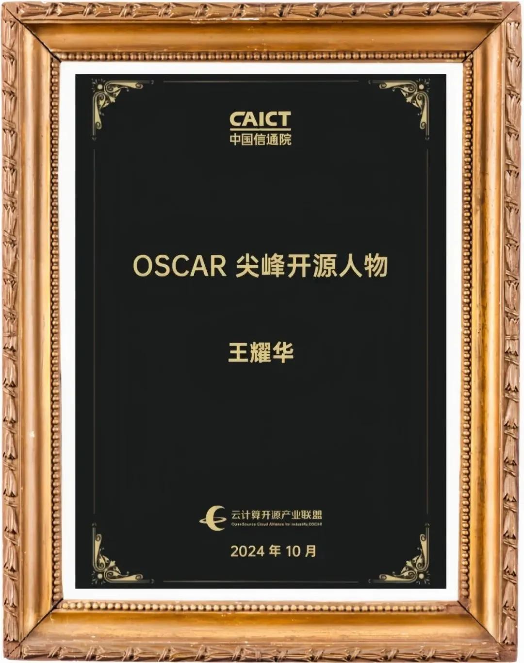 10月16日,由中国通信标准化协会主办,中国信息通信研究院承办的的“2024 OSCAR开源产业大会”在北京隆重开幕。在本次大会上,deepin(深度)社区副主席王耀华荣获了由中国信通院评选的“OSCAR尖峰开源人物”称号,这一荣誉不仅是对他个人在开源领域的卓越成就的认可,也是对 deepin 社区整体实力的肯定。