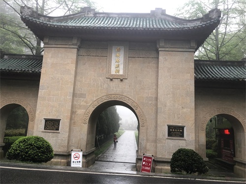 南岳忠烈祠,位于衡山香炉峰麓,1938年第一次南岳军事会议蒋介石听薛岳汇报,将士尸体露天未安葬,决定筹建。
