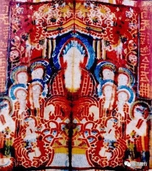 ▲辽代套色漏印彩色版《南无释迦牟尼佛像》。