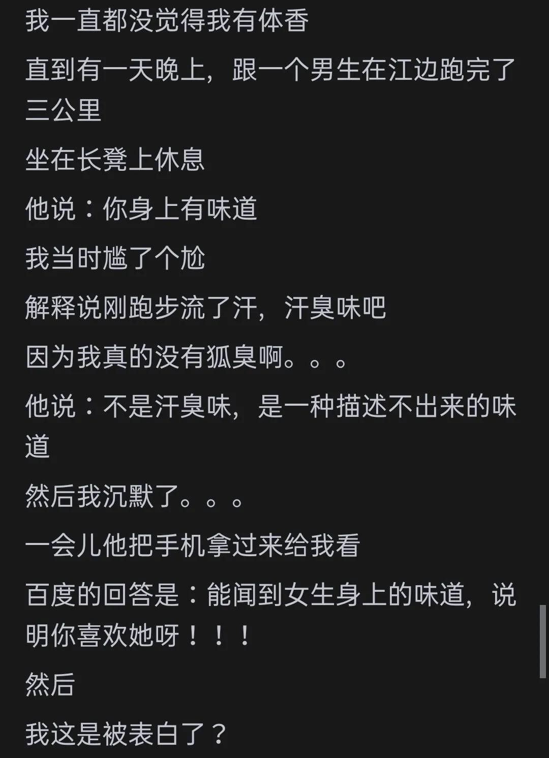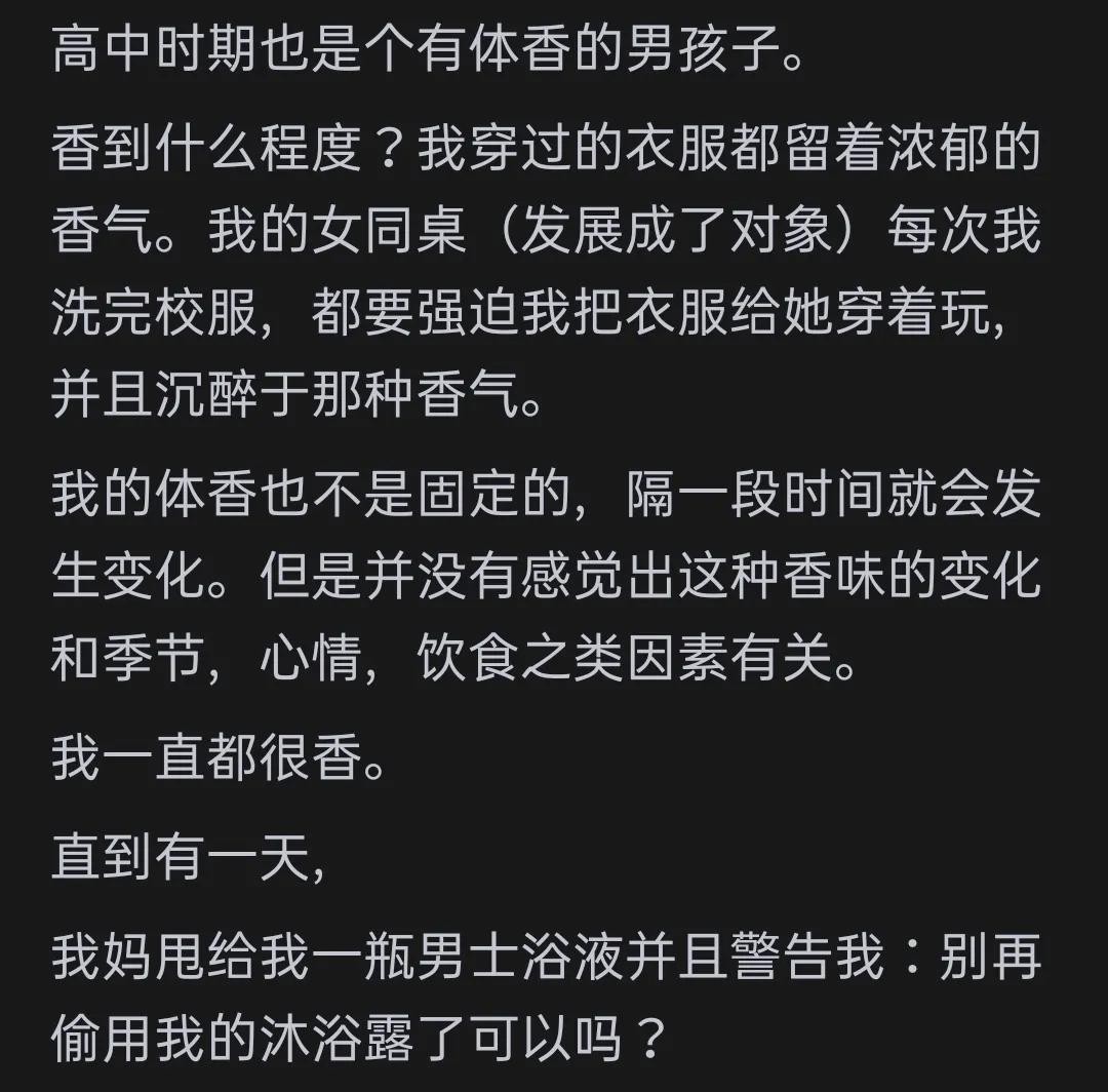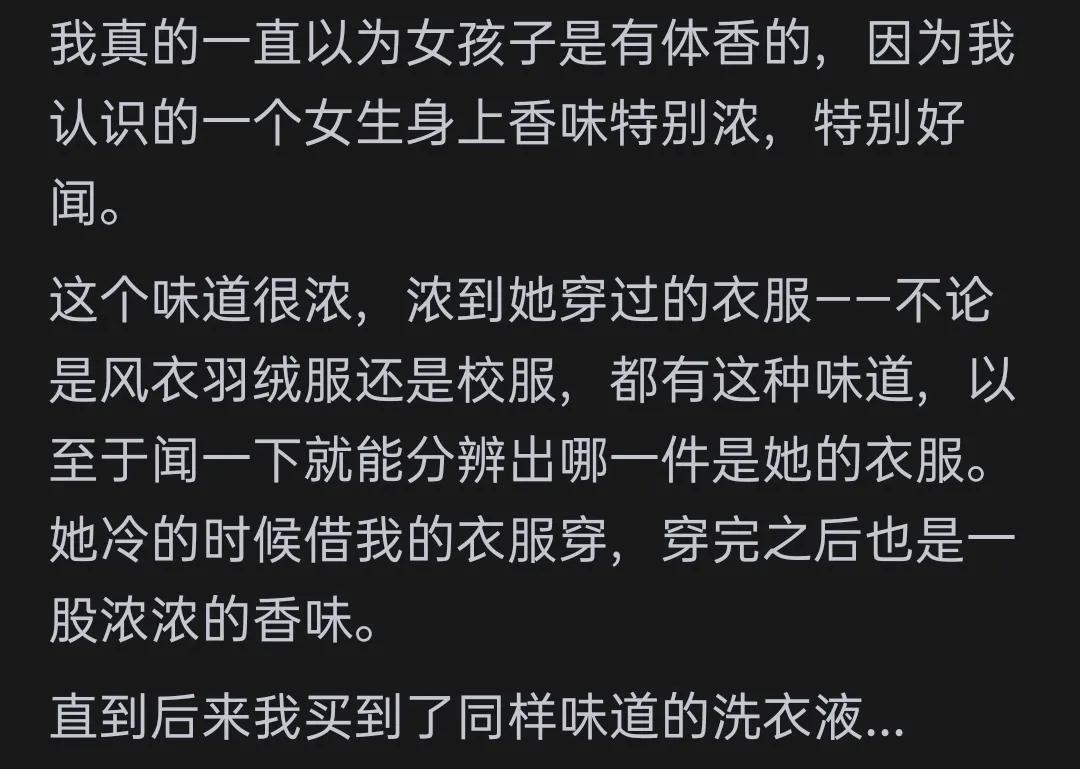 高中我们班一男的,说我们宿舍一女的身上有奶香味,我们天天和她一起上课下课,同宿舍都没觉得有。