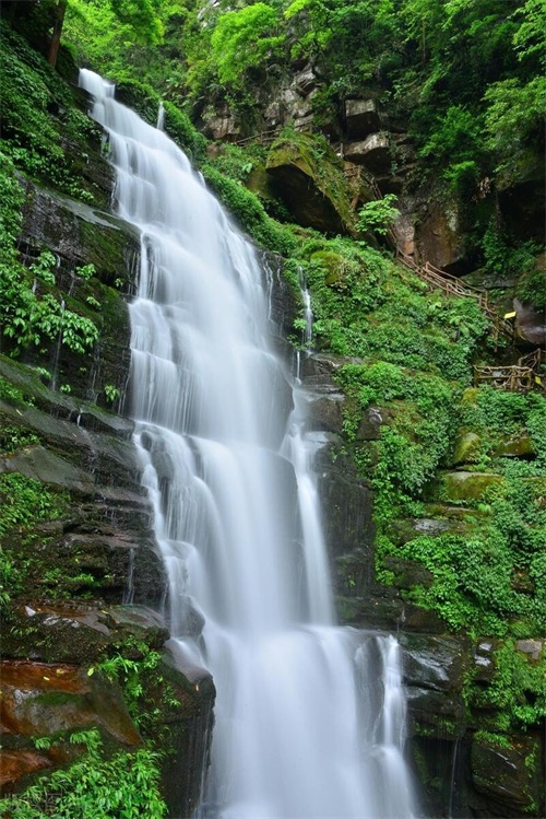 沿着栈道你可以下到半山画廊,前段飞流瀑布在等着你,高山绝壁在向你招手,好在这里的氧气充足,负氧离子浓度高,一个天然的氧吧,徒步者的天堂。