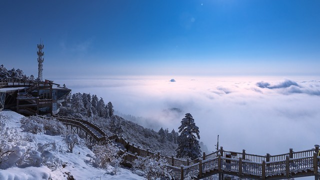 瓦屋山,因为山顶有一个超大的平地,好似房屋的瓦顶而得名,山顶是一个大平台,号称世界第二,亚洲第一的11平方公里的大平台,誉为最美的桌山,山顶平的好似一个桌子面。在山顶走一周需要2个小时,大约5公里。
