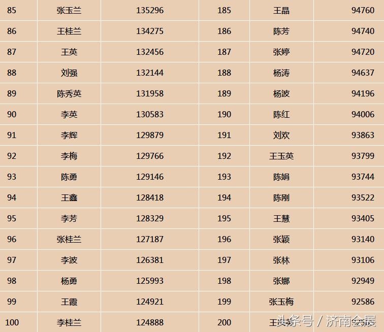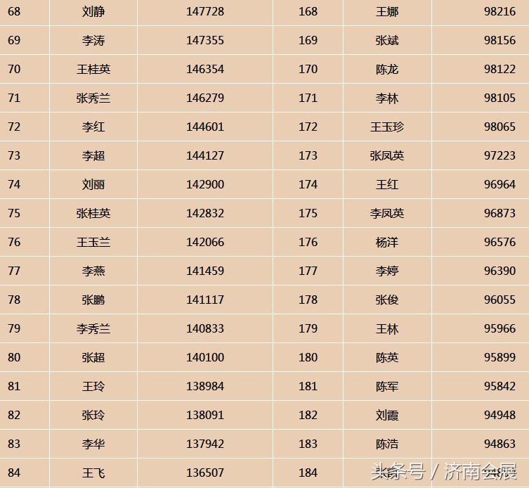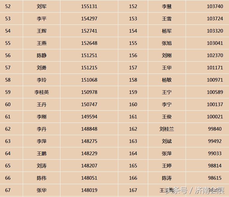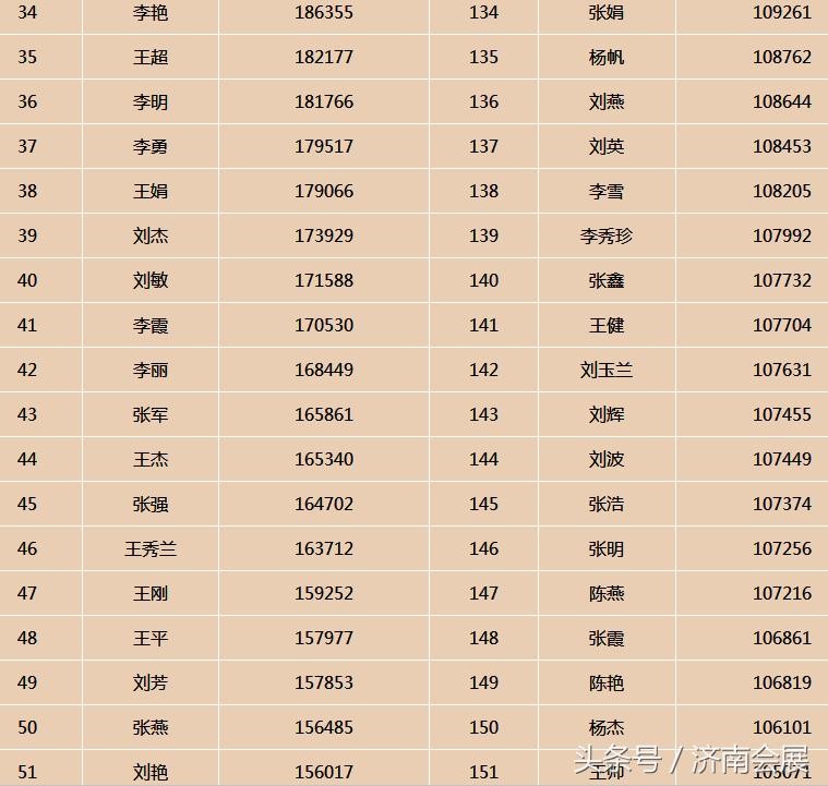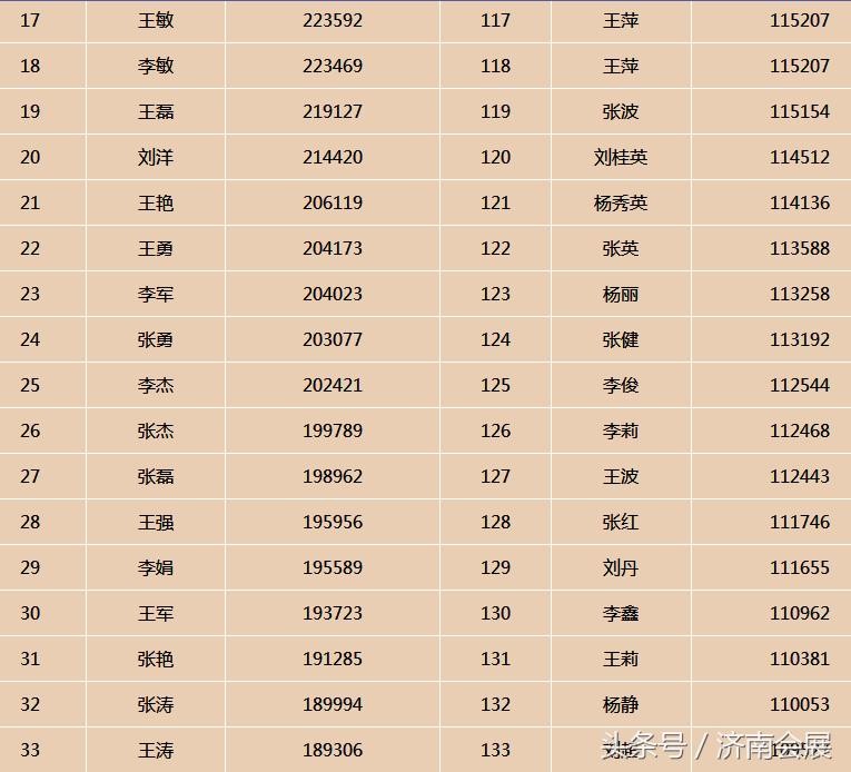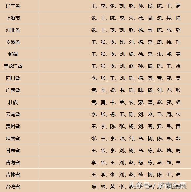 1:李2:王3:张4:刘5:陈6:杨7:赵8:黄9:周10:吴11:徐12:孙13:胡14:朱15:高16:林17:何18:郭19:马20:罗21:梁22:宋23:郑24:谢25:韩26:唐27:冯28:于29:董30:萧31:程32:曹33:袁34:邓35:许36:傅37:沈38:曾39:彭40:吕41:苏42:卢43:蒋44:蔡45:贾46:丁47:魏48:薛49:叶50:阎51:余52:潘53:杜54:戴55:夏56:钟57:汪58:田59:任60:姜61:范62:方63:石64:姚65:谭66:廖67:邹68:熊69:金70:陆71:郝72:孔73:白74:崔75:康76:毛77:邱78:秦79:江80:史81:顾82:侯83:邵84:孟85:龙86:万87:段88:漕89:钱90:汤91:尹92:黎93:易94:常95:武96:乔97:贺98:赖99:龚100:文
