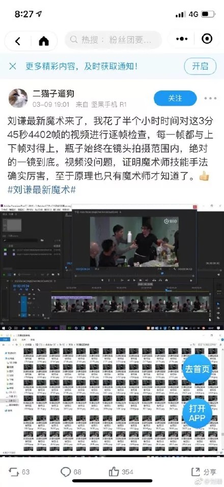 刘谦还贴出了一个网友的“技术贴”截图,自我调侃“需要这么夸张吗?”