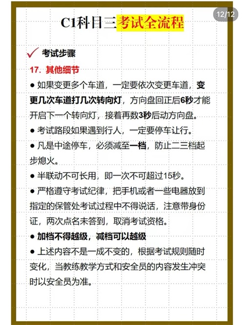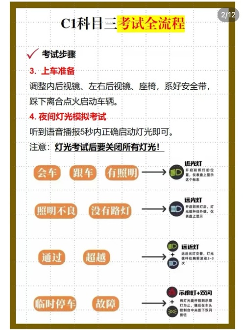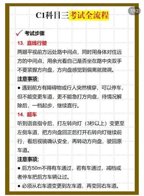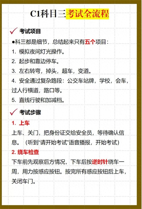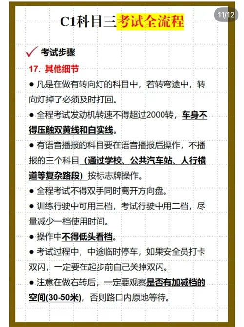 想考C1驾照的宝子们看过来!科目三考试全流程重点都在这啦!