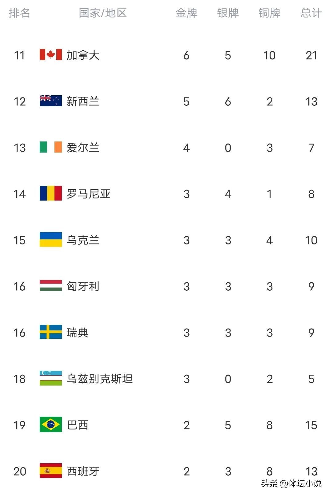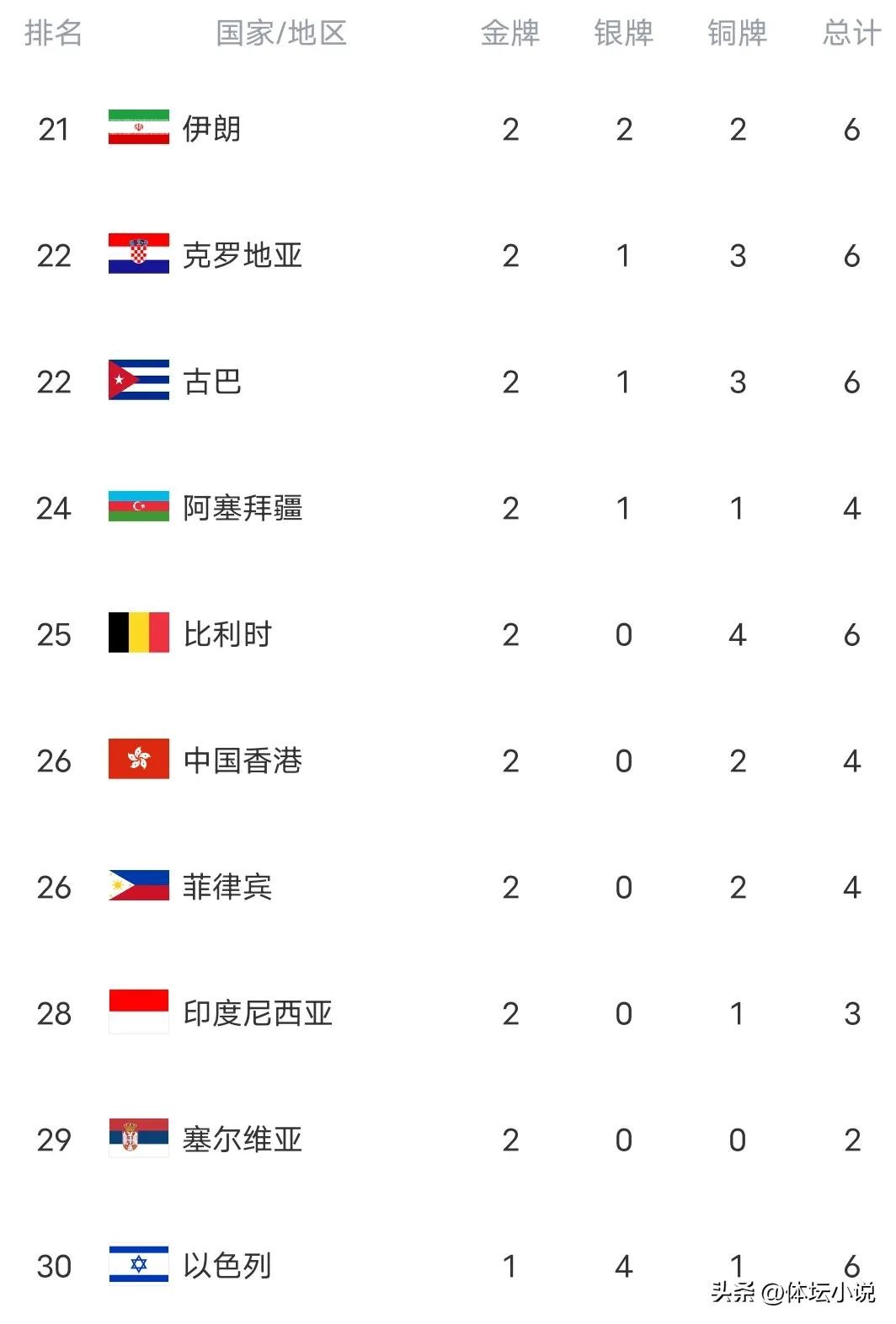 奥运会最新奖牌榜:美国30金103奖牌第一,中国第二,9队金牌上双