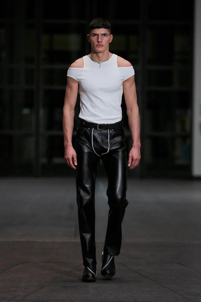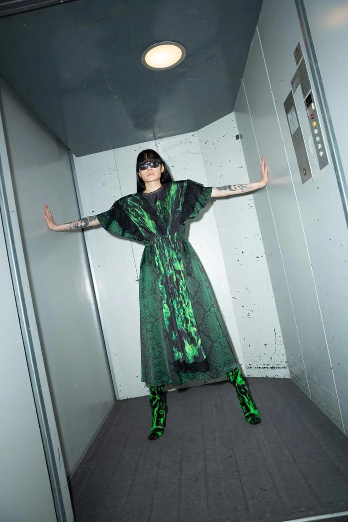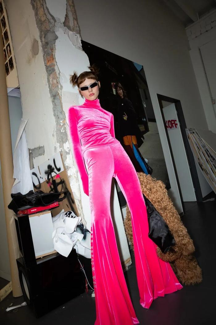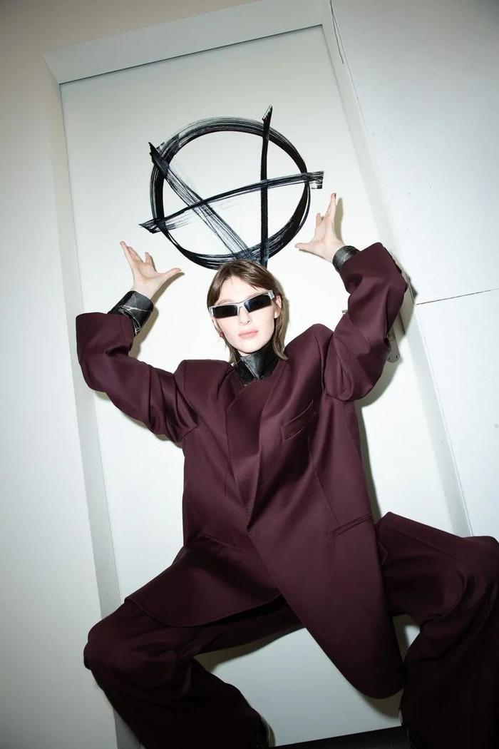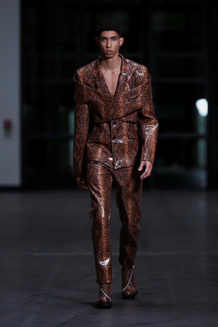 尽管短片涉及反乌托邦,但这家总部位于柏林的时装屋竭力在后疫情时代为未来提供一个充满希望的愿景:人造皮和蟒蛇打印提供了逃离运动裤和居家服的新常态可能,剪裁则参考了中世纪高级定制服装的轮廓。与此同时,人造革外套通过《黑客帝国》的联想将我们带回到模拟世界,以及已经消失但尚未被遗忘的俱乐部之夜。