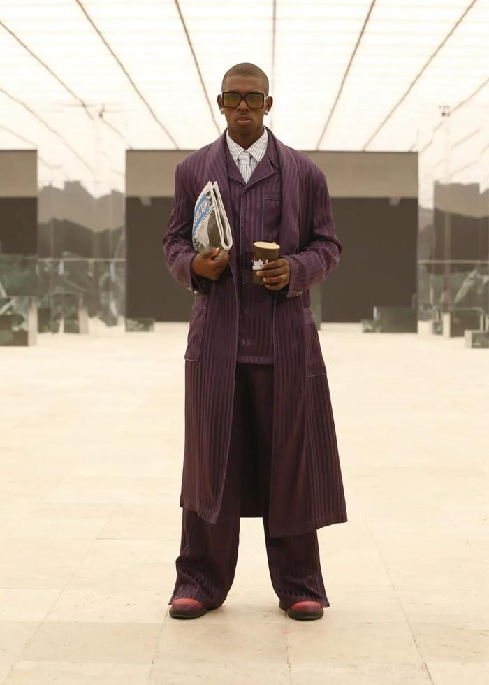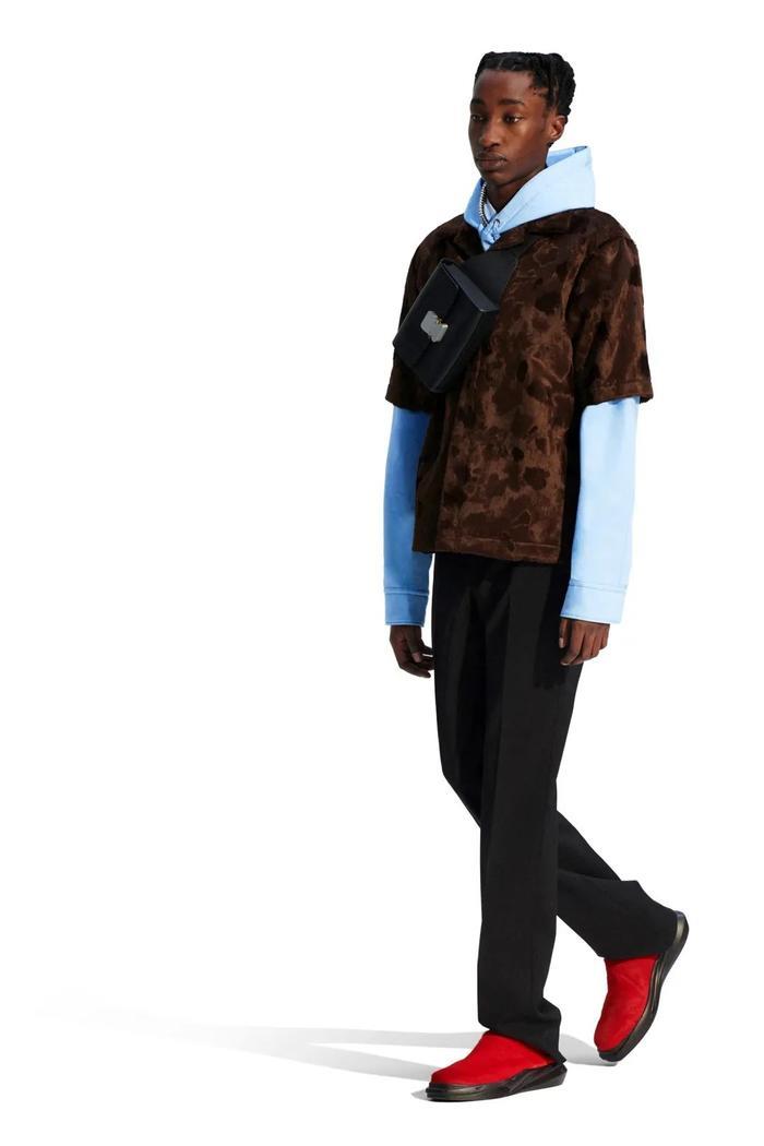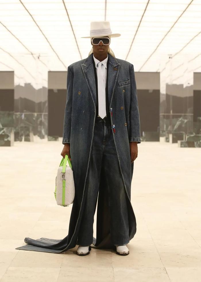 受James Baldwin 1953年的杂文《村庄里的陌生人》(Stranger in the Village)启发,大秀以瑞士阿尔卑斯山雪景的镜头开场,随后定格在一个极其别致、大理石场景的候机厅。Saul Williams朗诵了《编程语言》(Coded Language)中最振奋人心的部分,冉冉升起的诗人Kai-Isaiah Jamal 则成为Louis Vuitton史上第一位跨性别黑人秀场面孔,模特们混合了商人、艺术家、推销员与作家等角色,Abloh意图探索文本原型人物背后的象征意义,涉及世界各地的文化特征与政治宣言,这是个兼容并蓄的系列。