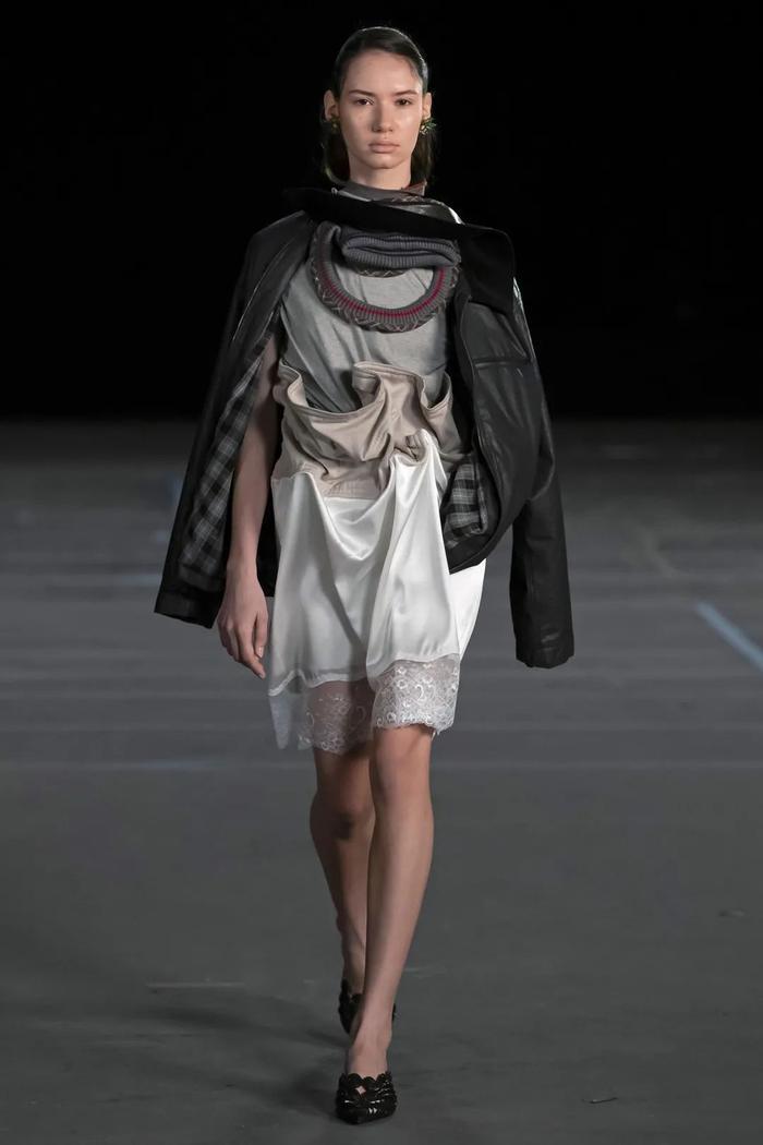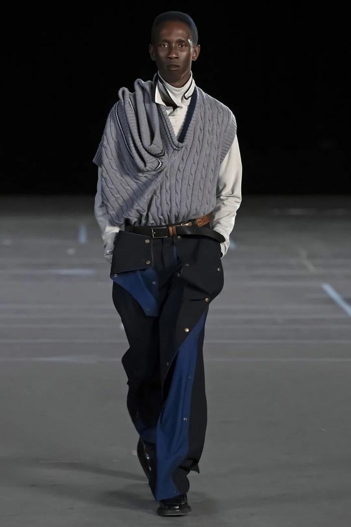 Glenn Martens最近接任了传奇牛仔品牌Diesel的掌舵人,但这并不意味着他在Y/Project方面会掉以轻心与怠慢了之。这一季,设计师推出了一个男女同款的中性系列,回溯了他的档案池并向更成熟的方向迈进。这意味着什么呢?剪裁得体的大衣,领口被扭曲了180度,领口歪斜的连帽衫,还有大量的束腰牛仔裤,如酸洗牛仔裤和宽大的衬衫外套。此外,还包括系列飘逸的丝绸连衣裙和裙子,不对称的手帕边,以及与Melissa合作设计的鞋款,灵感来自维多利亚时代的花瓶和灰姑娘式的 "玻璃 “拖鞋。