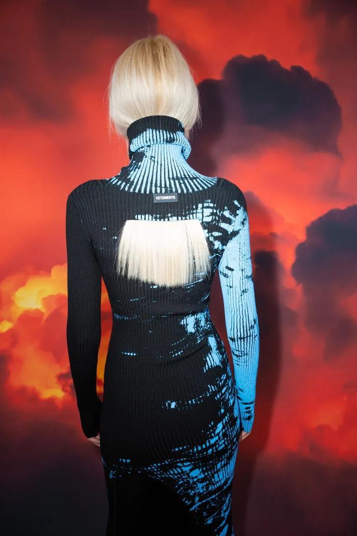 离开了Demna Gvasalia的Vetements团队在21年秋冬继续保持着它们高昂的战斗意志,并创作出多达165个造型。男装和女装一如既往地混在一起,这一次,Vetements深入到了自己过往的经典档案薄之中:夸张的XXL外衣,棱角分明的超大剪裁,以及扭曲和倾斜的晚装,如全长亮片连衣裙和丝质吊带衫,都提上了议程。品牌也迎合了我们的 "新常态",复活了Juicy Couture天鹅绒,推出了带有90年代标志性纹身图案的喇叭裤和第二层皮肤卷领上衣,还有人造毛皮泰迪熊拖鞋,打着 "高级定制 "幌子的透视网眼裙,以及胸前有五角星图案的头戴式帽衫(Rick Owens也认为这是21年秋冬的热点)。