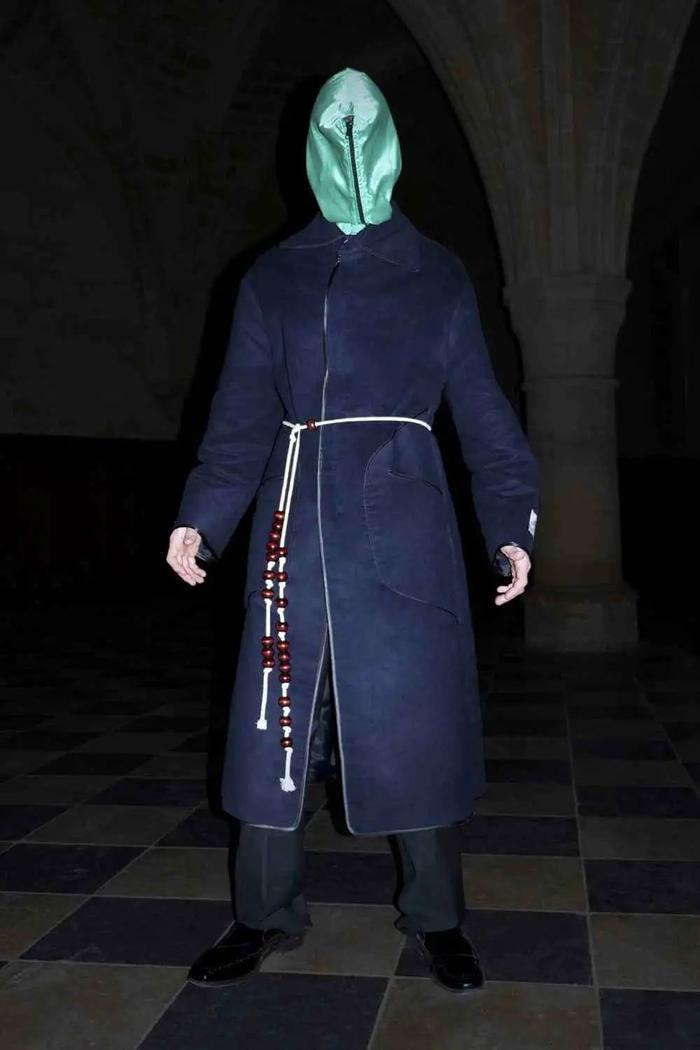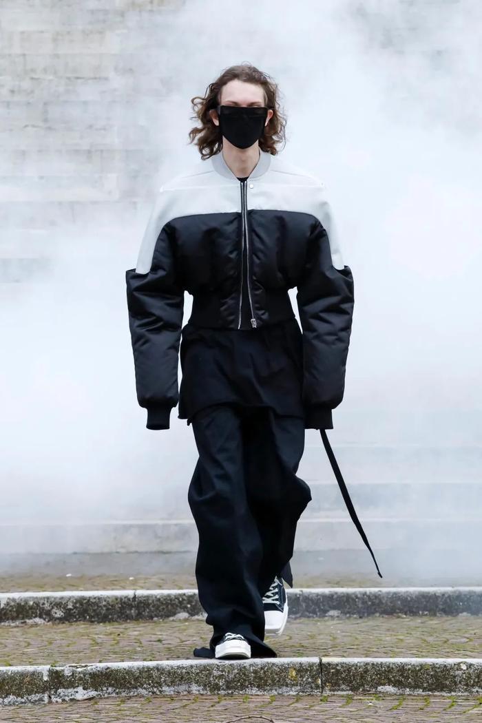 在威尼斯发表2021春夏女装系列后Rick Owens决定在这座水城呆上一段时间,随后便带来了硝烟中的2021秋冬男装大秀。临时搭建的T台在一条河畔,蒙面模特在“Ghostemane”主题背景音乐下来回穿梭,他们身穿 Owens风格浓烈的宽肩大衣、廓形外套、”圣经 “式的连帽长袍,以及梦想中如黄油般柔软的纽扣皮夹克——Owens解释说,这一季他再次陷入无垠之黑,这并不奇怪,鉴于我们生活的时代。他还透露了出该系列的名字叫做“Gethsemane / 蒙难地”——如果你不熟悉的话,这是耶稣被钉死在十字架前的祷告花园。