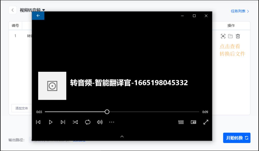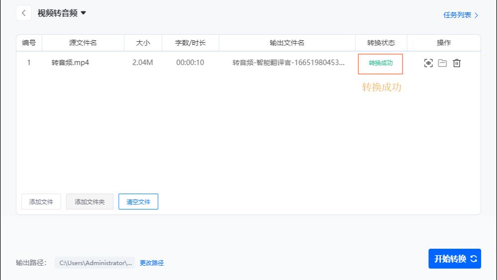 步骤四:等待转换状态显示【转换成功】,在【操作】一栏即可查看转换后音频文件所在位置,还可以对音频文件进行播放等操作。