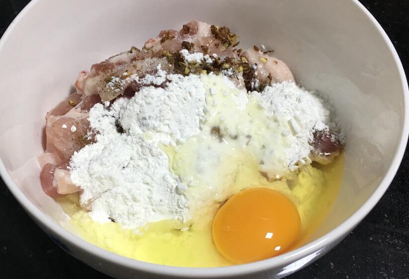 猪肉准备好后,把猪肉清洗干净,然后切成条或者切成片都可以,再把切好的猪肉放进碗里,再加入花椒、花椒面、盐、鸡蛋、淀粉,再加入一点面粉,这样酥肉就会很酥脆,放凉后也很酥脆,调料放进碗里后,再搅拌均匀,让猪肉上面都挂上面糊,接下来就可以炸酥肉了。