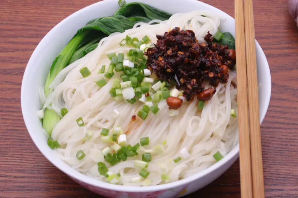 遵义羊肉粉是遵义地区的传统名菜之一,以羊肉、粉条、香菜等为主要原料。遵义羊肉粉的制作过程相当考究,需要将羊肉煮熟,切成薄片,再加入辣椒、花椒、姜等调料烹饪,配以酸笋、蒜泥、豆腐干等作为辅料。遵义羊肉粉味道鲜美,酸辣开胃,是贵州的特色美食之一。