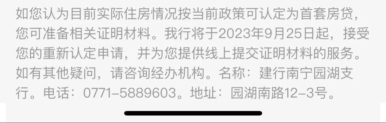本人的房贷在贷款发放时由于在全国范围属于二套,南宁属于首套,基于当时认房又认贷的政策,所以发放贷款时属于二套房产,目前最新政策是认房不认贷那我的房贷在南宁市应属于首套房产,可以获得本次存量房贷利率调整的资格,所以直接打电话咨询银行,银行方面没有给出相应的答复,只是留了姓名、身份证号码、联系手机号,说等银行查清楚后答复。