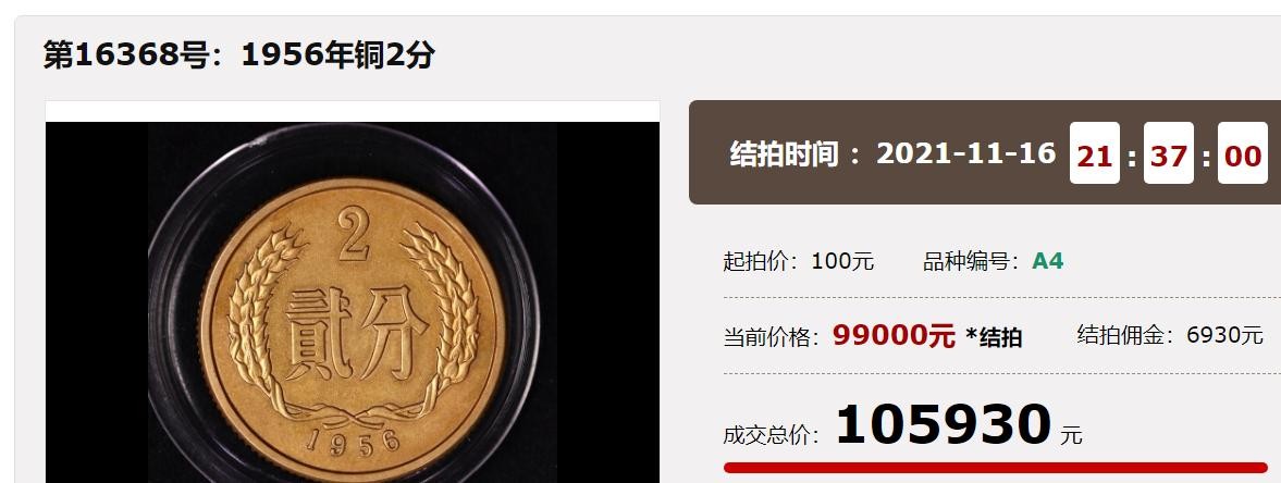 1956年的分币行情如何?有三种1分2分和5分,最贵的2分价值10万