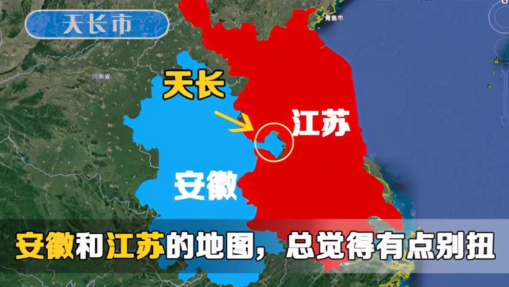 从下面的地图中更可以看出,天长市与江苏省的关系有一些关联,更像是一个安徽省从江苏省“挖去”的一块地方。