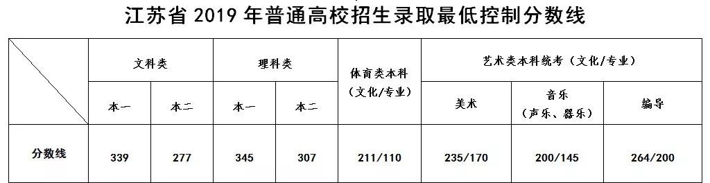 刚刚,江苏省发布2019江苏高考分数线:其中文科类:本一339,本二277;理科类:本一345,本二307。