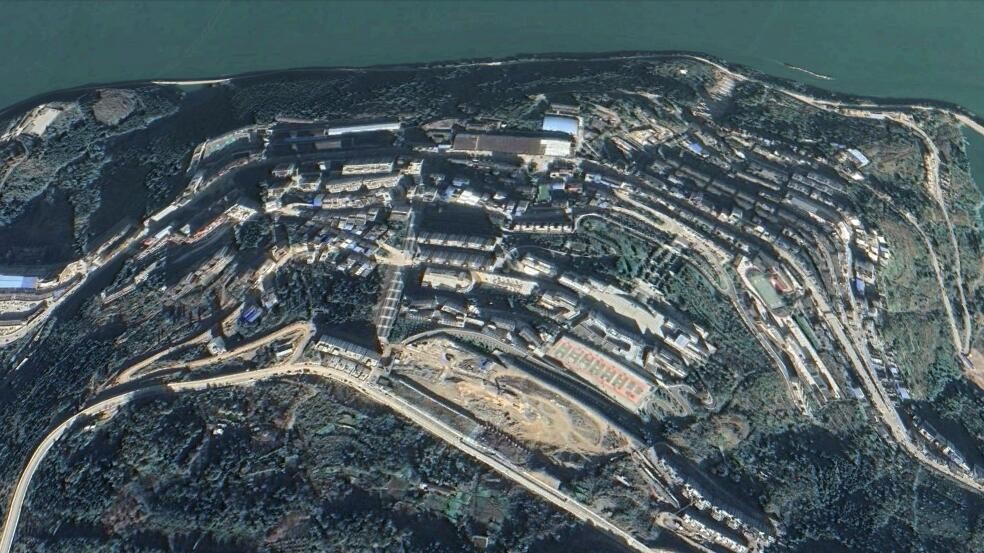 卫星上看湖北巴东县:县城位于长江两岸,依山而建少有平地