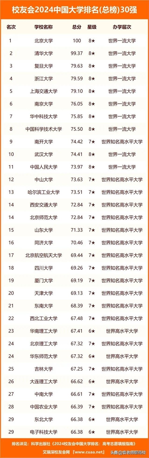 2024中国大学校友会最新排名,华中科大排名第七,南开位列第九