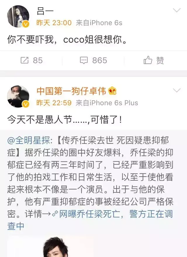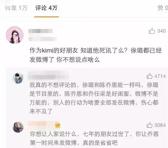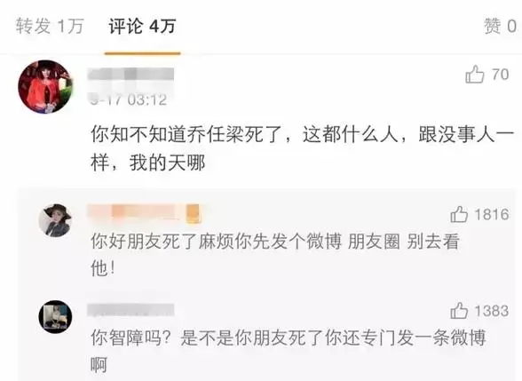 因为陈乔恩没发悼念乔任梁的微博,所以粉丝跑到她微博评论里开骂