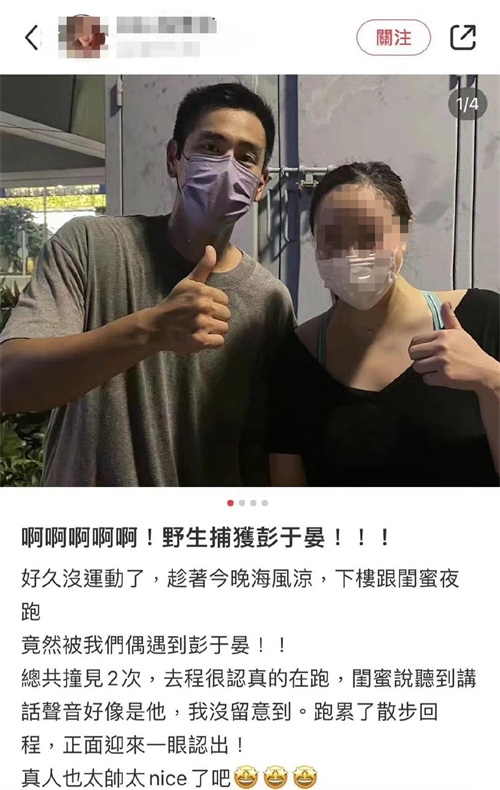 而近日,又有香港网友晒出了夜跑偶遇彭于晏的照片。