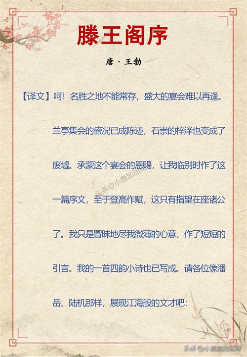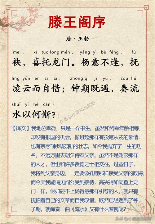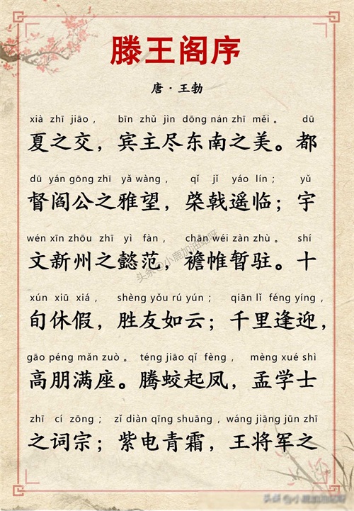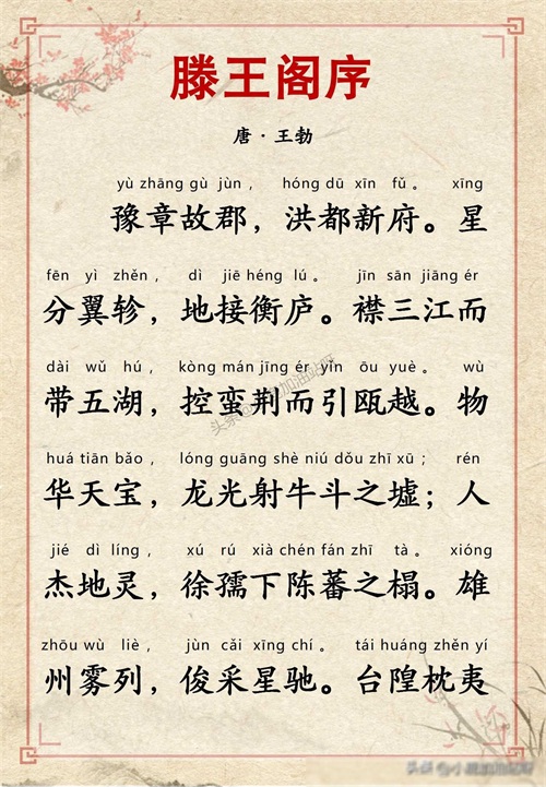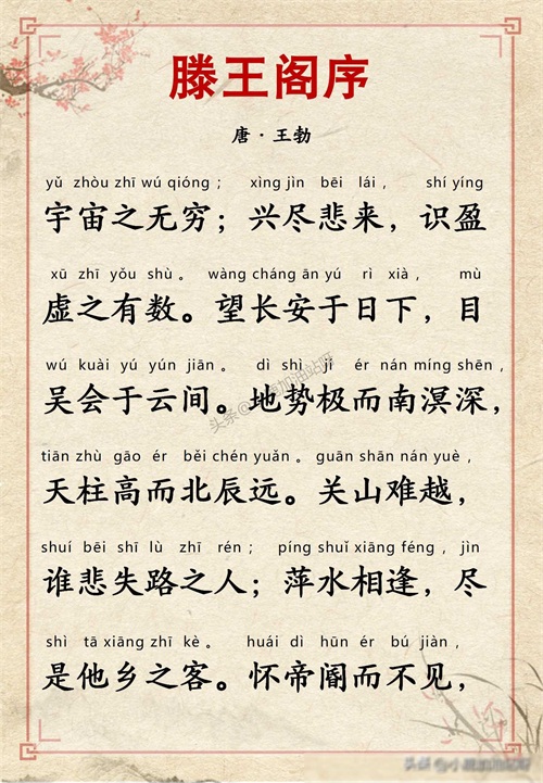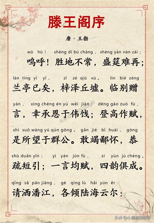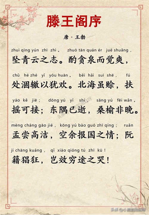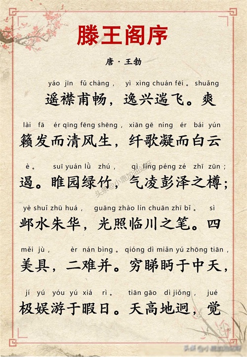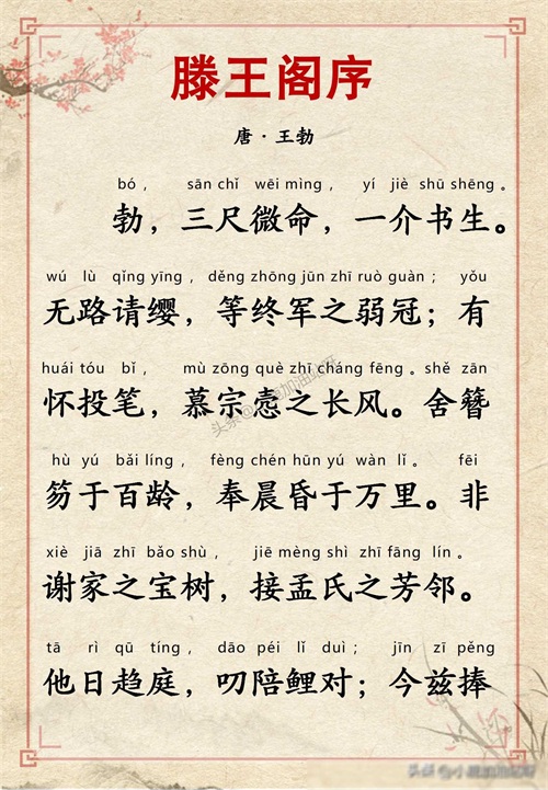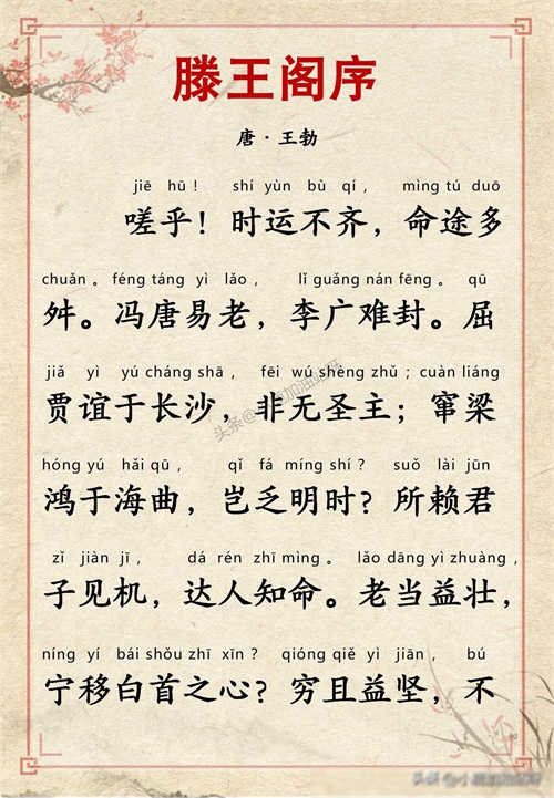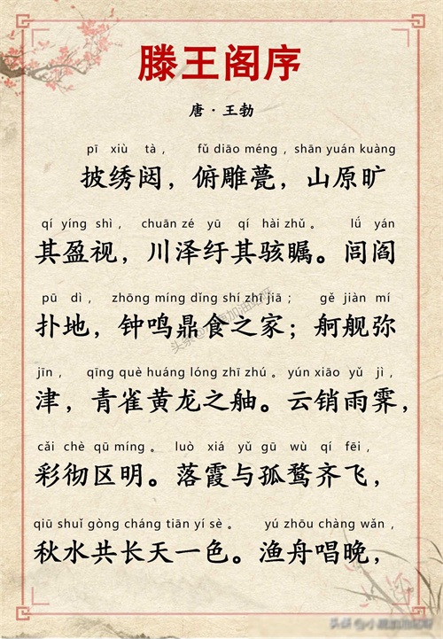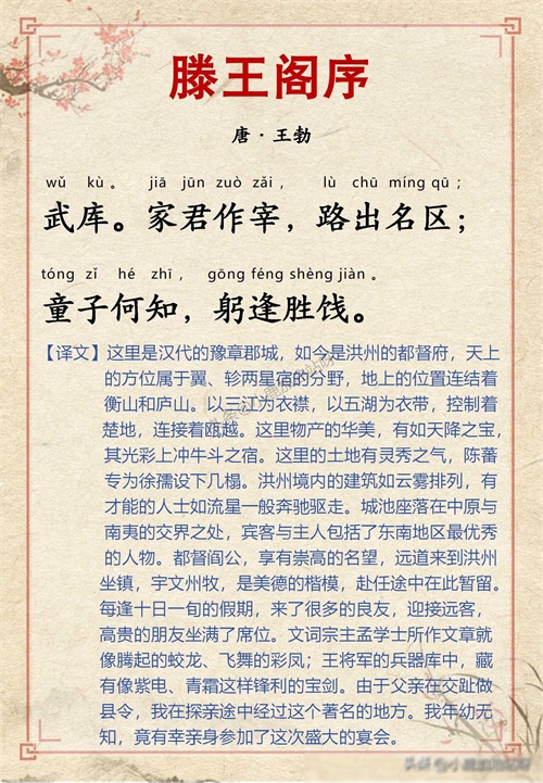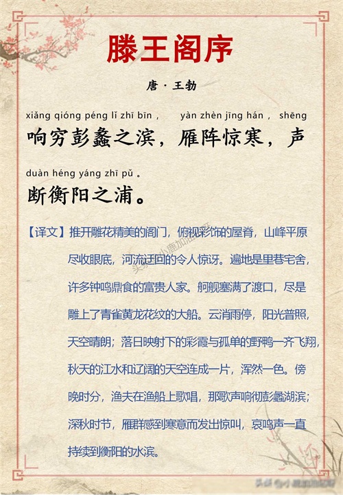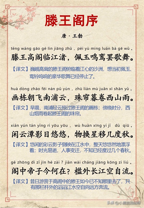 千古名篇 人生必读:王勃《滕王阁序》全文带拼音译文完整版