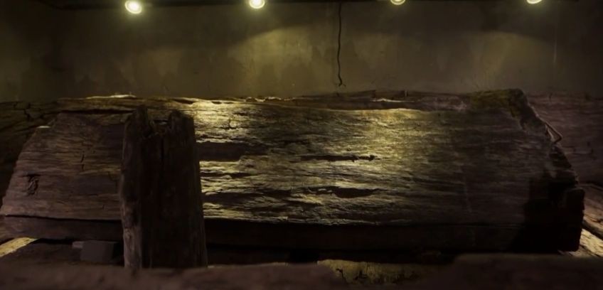 在博物馆工作人员这边有了新的发现,在大坑的周围散落着大大小小的木片,考古人员当时推断这应该就是墓坑中棺椁的碎片。