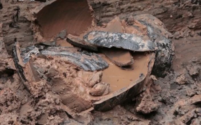 盗墓现场考古人员发现了很多陶器碎片,陶器作为生活实用器缺乏经济价值因此盗墓分子很少带走而是肆意破坏。但考古学者却能透过这些破损的陶片看到这个墓葬的出现时间。考古专家根据墓中散落的陶器残片经过分析判断这个墓葬应该是在西汉时期的一个墓葬。