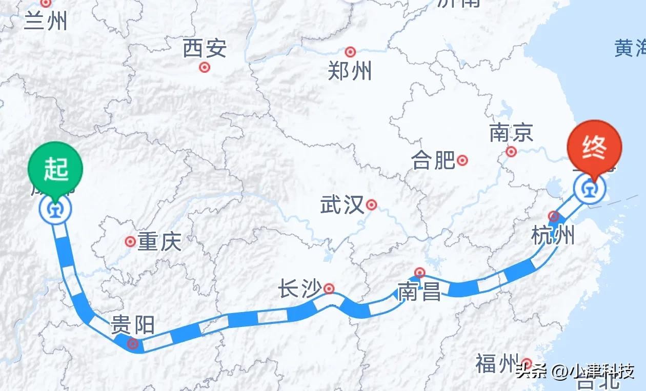 从四川省成都市到上海市的高铁动车线路有多种走法,今天我们来盘点一下。